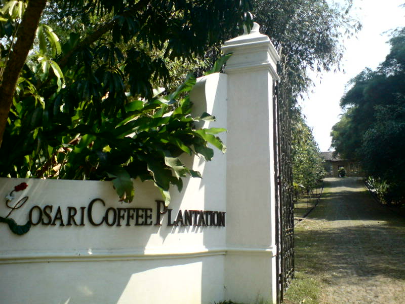 The entrance to Losari. The report reception is seen on the background. The area has international standard villas and restaurant. The visitors of this resort mostly are foreign tourists. While staying in this resort, the visitors can have coffee plantation tour, take a scenic trip of steam powered train in Ambarawa, visit Borobudur temple, or simply spend a day in the resort pool and spa.