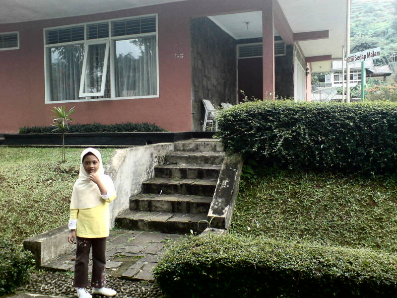 Kita juga sempat bernapaktilas ke Vila Sirnagalih milik Pertamina di Cipayung. The great time we spent with our parents here still vividly remains on our memory. Aya berpose di depan Vila Sedap Malam, salah satu vila yang pernah kita tinggali.