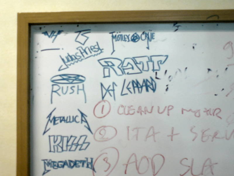 Office >High School Graffiti Posted by Ibenimages on 1 February 2008 > Remember these? We used to write our favourite rock bands logo everywhere. I and Andre relished those moments in our office white board. Share this: Click to share on X (Opens in new window) X Click to share on Facebook (Opens in new window) Facebook Click to share on Pinterest (Opens in new window) Pinterest Click to share on WhatsApp (Opens in new window) WhatsApp Click to share on LinkedIn (Opens in new window) LinkedIn Click to share on Pocket (Opens in new window) Pocket Click to email a link to a friend (Opens in new window) Email Like Loading...