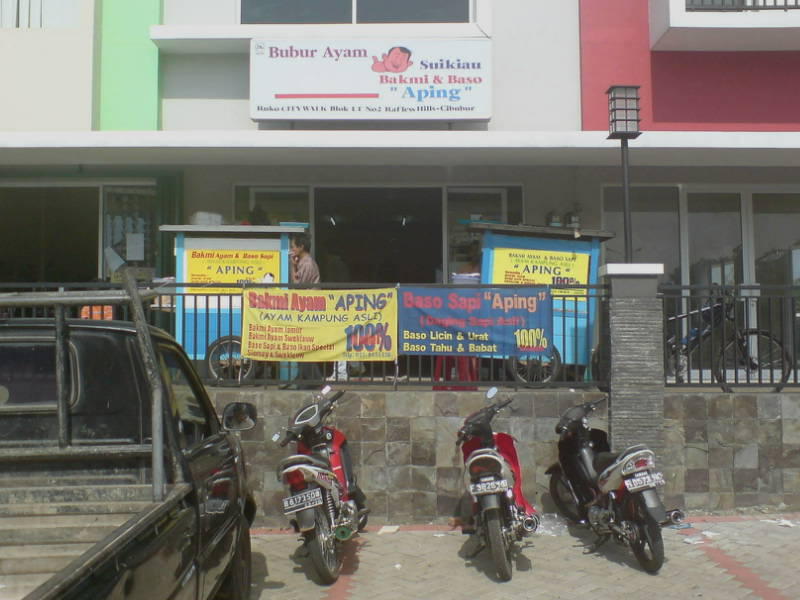 Family, Snapshots of Indonesia >Bakmi Aping Posted by Ibenimages on 7 March 2008 > One of our favourite breakfast place: Bakmi Ayam Aping at Raffles Hills complex Cibubur. Started initially in one small corner of the complex, it now opens a permanent restaurant place. Share this: Click to share on X (Opens in new window) X Click to share on Facebook (Opens in new window) Facebook Click to share on Pinterest (Opens in new window) Pinterest Click to share on WhatsApp (Opens in new window) WhatsApp Click to share on LinkedIn (Opens in new window) LinkedIn Click to share on Pocket (Opens in new window) Pocket Click to email a link to a friend (Opens in new window) Email Like Loading...