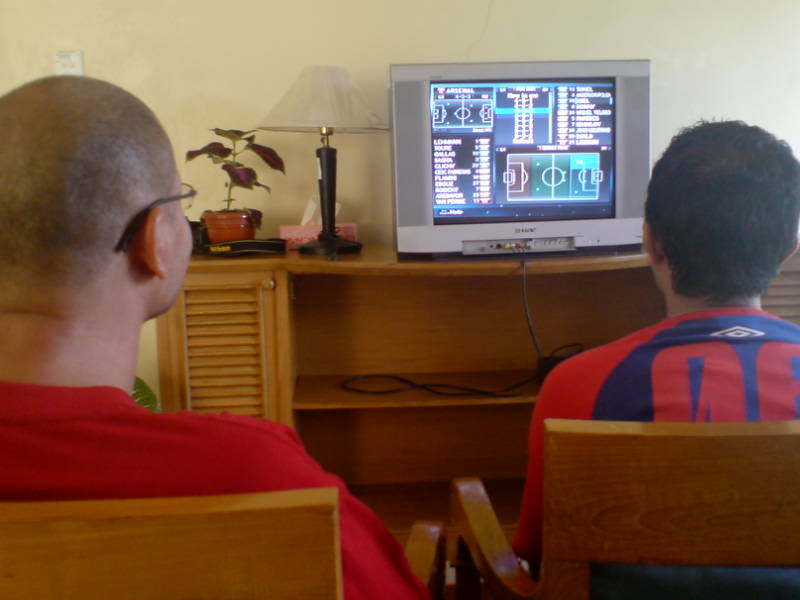 Weekend ini diajak Mas Oyi untuk menginap di Wisma BI di Lido. Kesempatan bagus untuk menyelenggarakan turnamen Winning Eleven bertajuk Copa Kresnadi. Tampak Barry dan Bona sedang setting strategi. Siapa yang menang? Eeiii… yang jelas, tim besutan saya kalah lagi, tidak bisa menambah koleksi 5 kali juara Copa Kresnadi. Baca di blog Mas Oyi untuk tahu pemenang Copa sesi Siang dan sesi Malam. Kita masih belum legowo untuk membuat liputannya.. kekeke…
