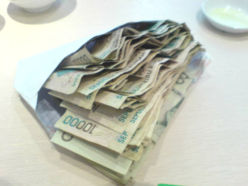 After strugglingly break the Piggy Bank, we count the money inside. Personally I thought there were only 600 thousands rupiah inside. But we found out there are more than 1 million rupiah (Rp. 1.037.000 to be exact). Well, our late friend Dicky was the biggest contributor. 🙂