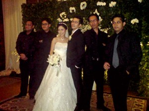 Our dear friend Richard is getting married today at Hotel Dharmawangsa. He marries Ellia, former office mate whom he met at HSBC. Of course we did not miss the opportunity to take our ritual ‘DEWA’ like pose with the bride and the groom. Hehehe..