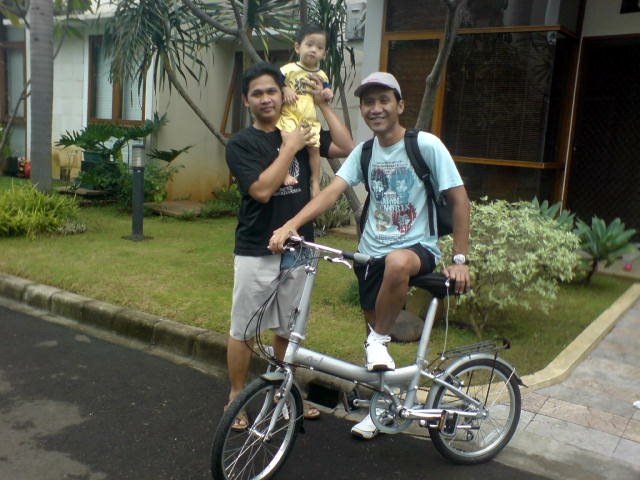 Committed to my fitness regime, I woke up early this morning and cycled to Sulis’ house in Pejaten Barat. Not too far away, perhaps around 6 km distance, but it gave me enough exercise and fun. Shown in this picture is me, my Dahon, Sulis and his son Kinan in front of their house. Who’s next to visit?