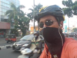 Biking to work in Jakarta face you with lots of challenges and hazards. Aside from usual traffic risk mainly caused by erratic pattern of other road users, you also need to Be prepared for air pollution. That’s why I wear the protective mask.