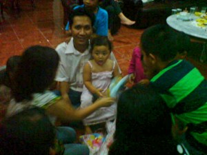 Rania is sitting comfortably on my lap, while opening her birthday presents. Happy birthday my dear niece!