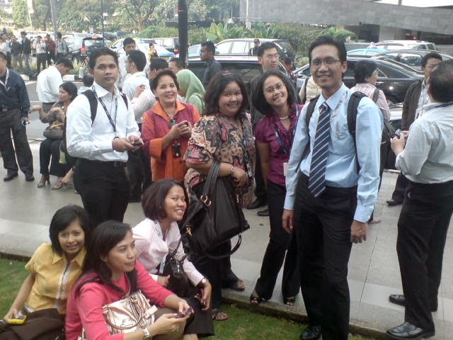Earthquake! Then we need to evacuate the building! HR team posed shortly after safely arriving at the ground. The earthquake today, which epicentrum was in Tasikmalaya, scaled at 7 richter scale, quite made the skyscrapper habitants like us, panic and scared. Alhamdulillah, all of us and family are fine.