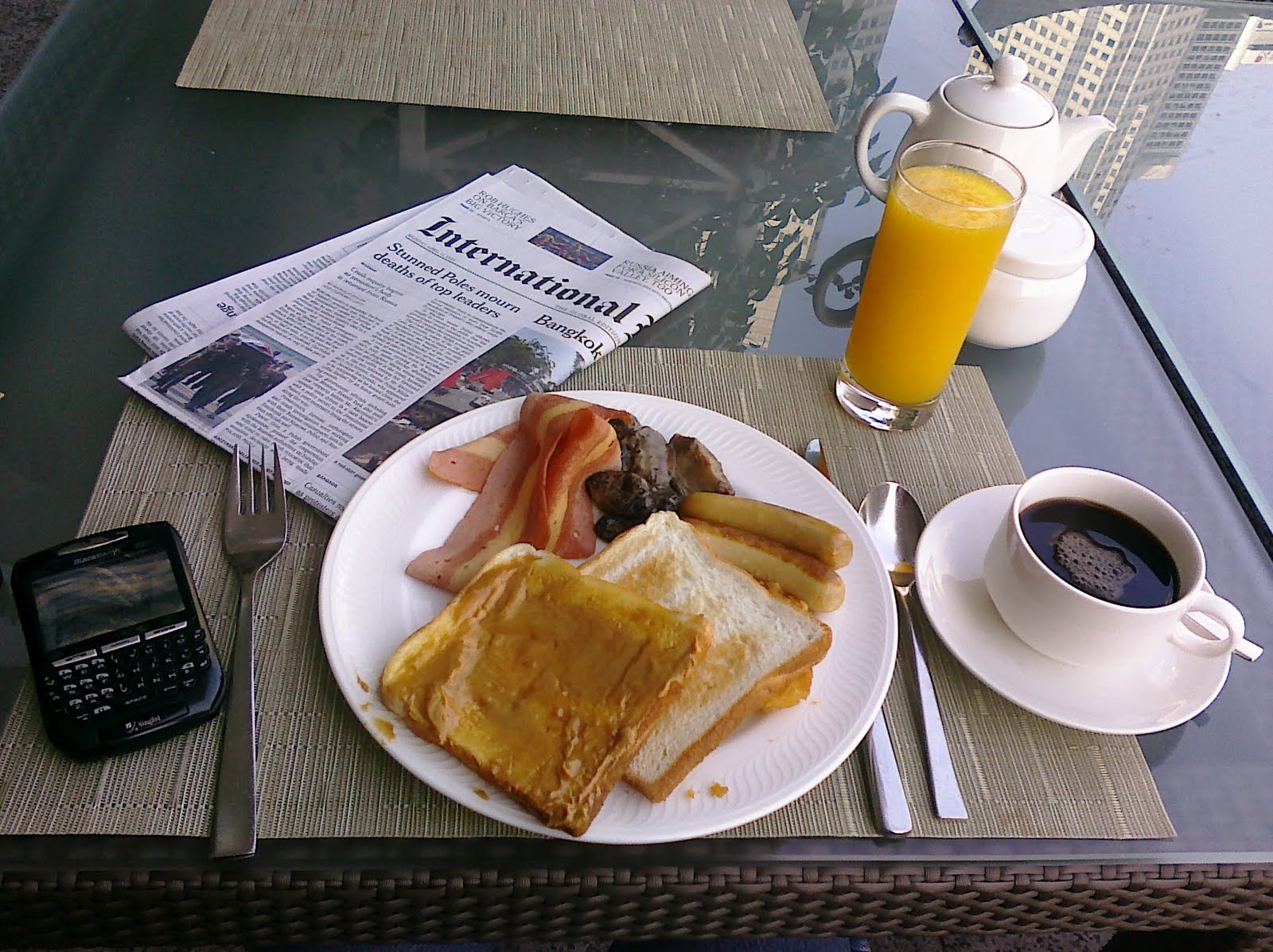 Office Breakfast by The River Posted by Ibenimages on 19 April 2010 > Classic european breakfast by the river in Fullerton Hotel Singapore. If only I don’t need to be at the office by 8 am. 😦 Share this: Click to share on X (Opens in new window) X Click to share on Facebook (Opens in new window) Facebook Click to share on Pinterest (Opens in new window) Pinterest Click to share on WhatsApp (Opens in new window) WhatsApp Click to share on LinkedIn (Opens in new window) LinkedIn Click to share on Pocket (Opens in new window) Pocket Click to email a link to a friend (Opens in new window) Email Like Loading...