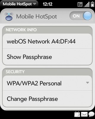 But Palm also developed one excellent application here named as “Mobile Hotspot”. As the name suggested, this application allows your Pre to become your Wifi Router. So all Wi-Fi connected device can use your Pre’s data line to access internet, or receive emails. It is a very useful application, which I use quite often to enable my iPod Touch to access the internet where no Wi-Fi hotspot is available.