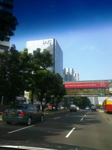 The aftermath of world’s financial crisis: the closure of a UK bank which cease to operate in Indonesia. The process of dismantling the bank’s logo was still in the process when I took this picture last Sunday. So an you guess the bank’s name? 🙂