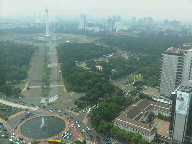 Monumen Nasional (“Monas”), the landmark of Jakarta, as seen from 25th floor of Menara Radius Prawiro, office of Bank Indonesia.