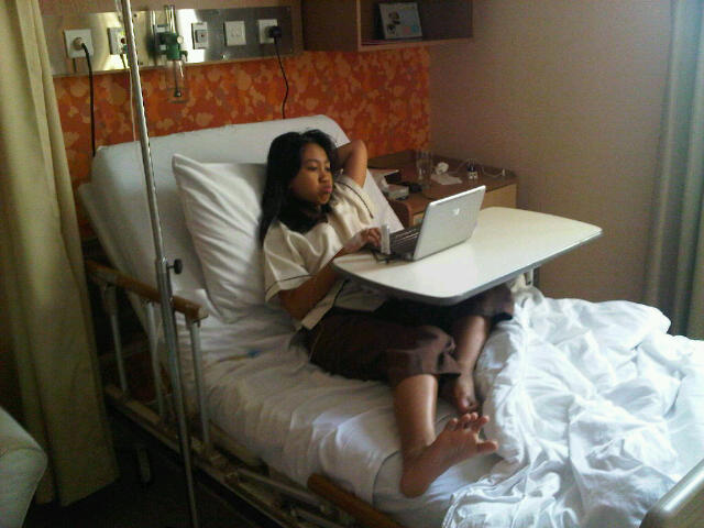 Here she is, a teenage who can’t live a day without computer, play her favorite web games on the sickbed.