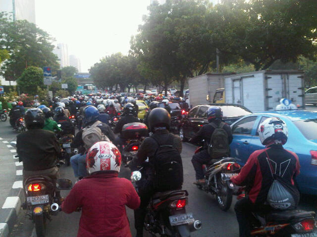 But guess what, only few of them will do, with this kind of traffic blocking their way home meanly. The motorcyles clogged up the street, the car drivers frustratingly honking their horns, and the crowd-packed buses are helpless, barely moving along with the traffic. But love it or loathe it, it’s Jakarta! Our home sweet home. 🙂