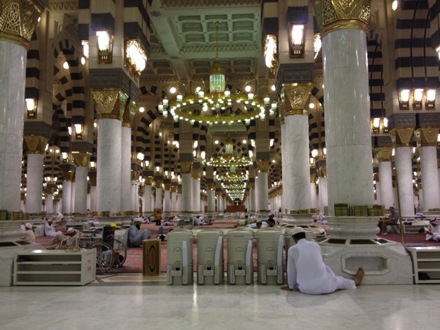 Seen in the picture, are the drums of “Zam Zam” drinking water, which is provided for free for all prayers. Kingdom of Saudi Arabia Goverment do a very good job to ensure contonious supply of this Zam Zam.