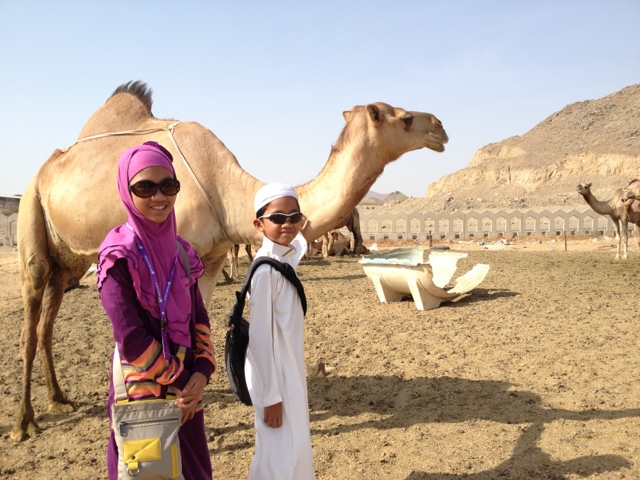 On our way to Jeddah we stopped by a camel farm which is located just on the side of highway. Some of our jamaah used the opportunity to buy camel milk. But the kids, Rafif, especially, really fascinated just to meet and pet the big camel from close quarter.