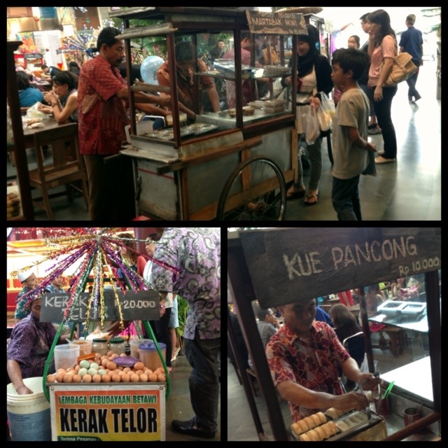 Pondok Indah Mall’s newest food mall, Street Gallery, organize “Betawi Food Festival”, featuring Jakarta’s traditional delicacies, such as “Kerak Telor”, “Kue Pancong” and “Kue Ape”. Elok is eagerly visiting the fair and buying some snacks to take home.