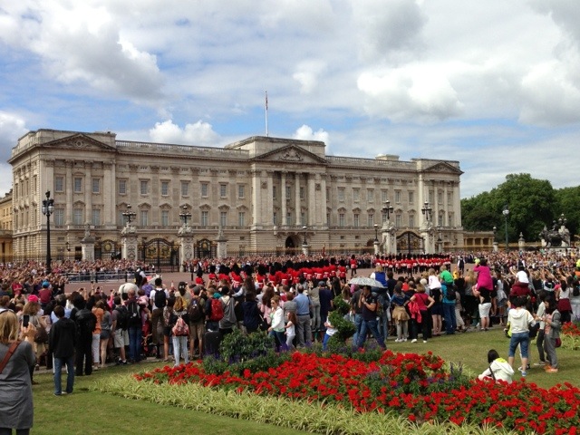 This morning we gathered with thousands of crowd in Buckingham Palace to watch the traditional ritual changing of the guards. It’s holiday season here, so international and local tourists jammed in the place. Thus, unless you came early, at least 3 hours before, you won’t get the space right in front of the palace to witness the whole process from close quarters. Just like us here, obviously 🙂