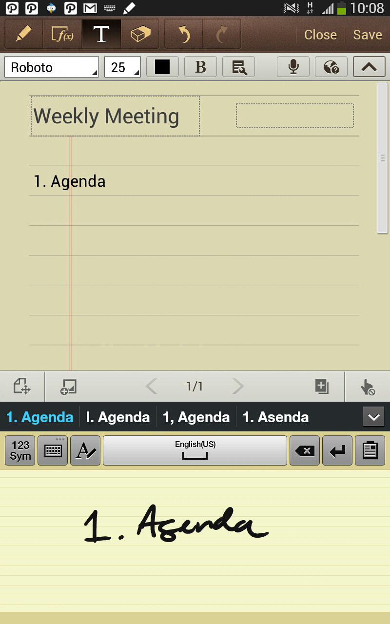 I grew up owning Palm Pilot as my first PDA. I was used to input text in my PDA using Palm’s Graffiti handwriting recognition technology. If your handwriting is not good, or you like to have your note typed up in proper font character all the way, you can opt to use handwriting recognition technology in S-Note. And I found this technology in S-Note is better than ever. Coupled with predictive text input, you can easily write as you normally hand write using your pen, and I found 90% of times, the predictive text input and handwriting recognition guessed it correctly! Well, I personally would rather to keep my notes in my handwriting, but to know that I have excellent option in store is great.