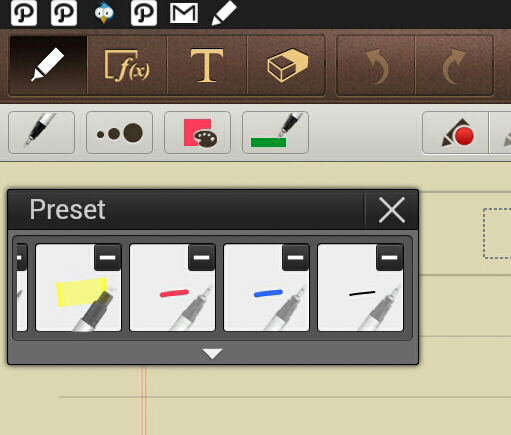 A killer feature in my opinion. S-Note allows to store your favorite preset of pen tips. Very useful for people like me, who likes to take note using different colors and pen tips/types to emphasize key points, and to draw some charts in my notes. Here, I stored 6 presets ranging from my black-pen tip (which I use for 60% of my notes), to red/blue/green color marker, and yellow stabillo-esque transparent highlighting marker. If you have stored these presets on your S-Note, you can easily pick the pen tip you like to use in two clicks. I find it very simple to use, yet fulfilling my needs perfectly.