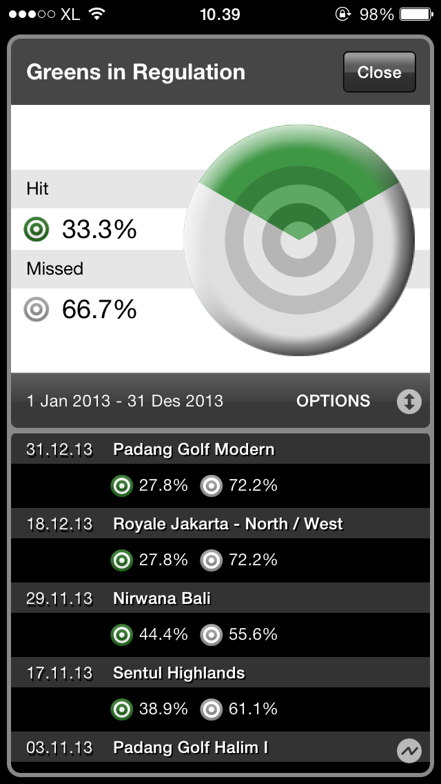 - Greens in Regulation (GIRs) is exactly the same as in 2012. Only 33.3%. To lower my handicap, I need to hone my approach shots so I’ll get more GIRs, and hopefully, more Pars or better.