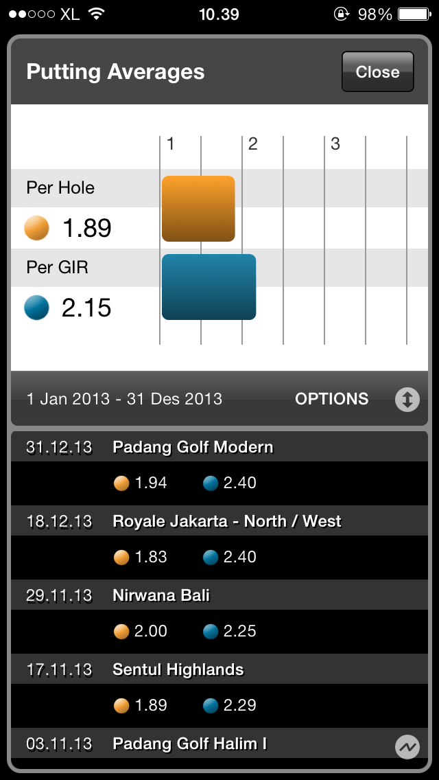 - But more GIRs won’t be too meaningful if I can’t convert those par or birdie putts! Putting has been my area of weakness in 2012, and it seems to continue in 2013, albeit there was also an encouraging improvement. I managed to reduce my total putts per hole from 1.92 putts in 2012 to 1.89 putts. However, when I had GIRs, I putted slightly worse than last year, 2.15 putts compared to 2.12 in 2012. Practice your putts, you must *YodaSpeak*