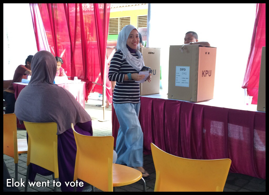Today is election day for Indonesia. Everybody embraces the day with joy. Not necessarily because this is the day we will define our nation’s future for the next five years, but because today is declared as holiday by the government. Yeay! So everybody’s happy.