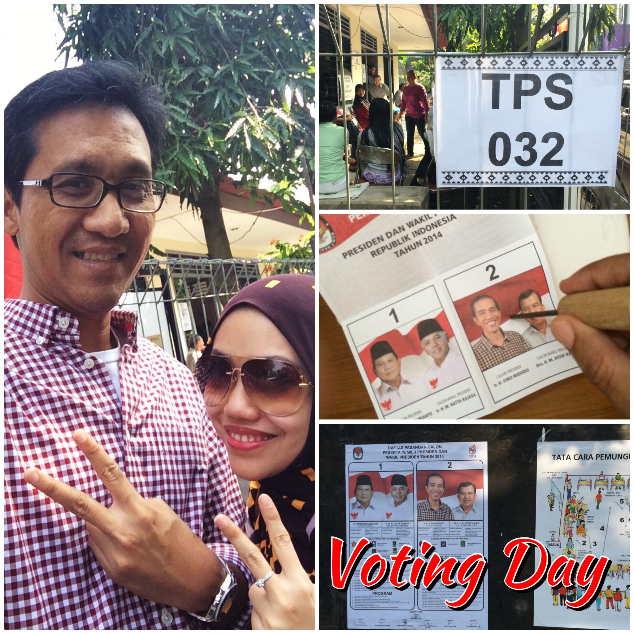 Kemarin tanggal 9 Juli 2014 menjadi tonggak sejarah bagi bangsa Indonesia. Pemilihan Presiden yang dilakukan secara langsung dalam skala terbesar ketiga di dunia, berhasil dilakukan secara lancar dan aman. Saya dan istri pun berpartisipasi dengan memilih calon presiden pilihan kami di TPS 032 Cilandak Barat, Jakarta Selatan. Alhamdulillah.