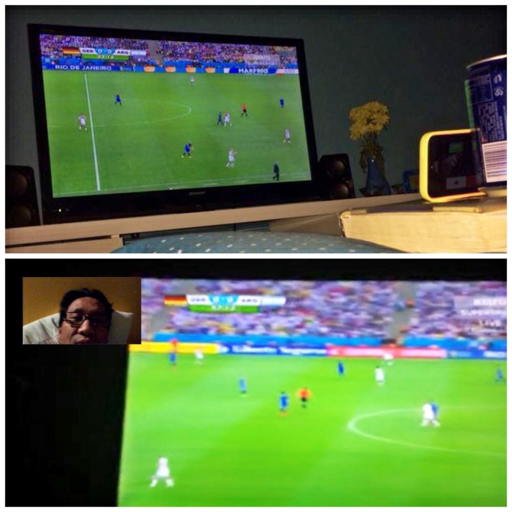 As my hotel TV did not broadcast World Cup channel, and all Singapore’s wifi are blocked from all a free online telecast of World Cup, my sister had this brilliant idea to get me her TV screen via Facetime. It worked brilliantly (bonus: we can have live chat during the match!)