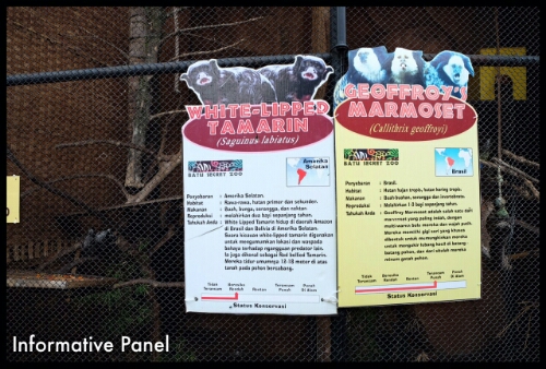 The zoo welcome us with its primate monkeys collection. Soon I realized, this park has something to offer. At least, it was built based on passion, not merely for dough. It has an almost single track that guide us through the entire zoo collection. And the collection is quite something. Already I found some rare and unique primates. The information panel board here is also quite informative, giving us enough facts and tidbits to keep us updated.