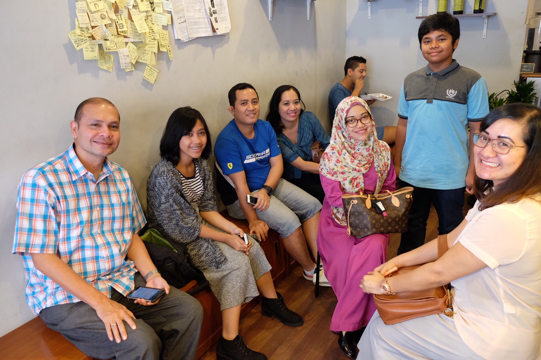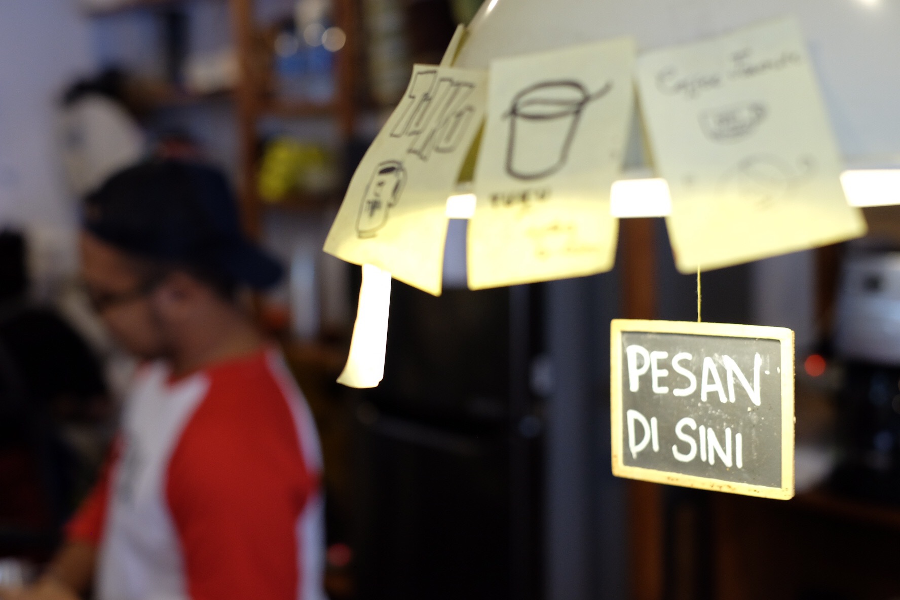 The whole family cramped in Tuku Coffee stallAfter the lunch in Citos, we’re craving for good coffee. So here we go, we took my family to Tuku, our favourite coffee stall in Cipete. It’s great, with just one regret: the serving is too small! 🙂