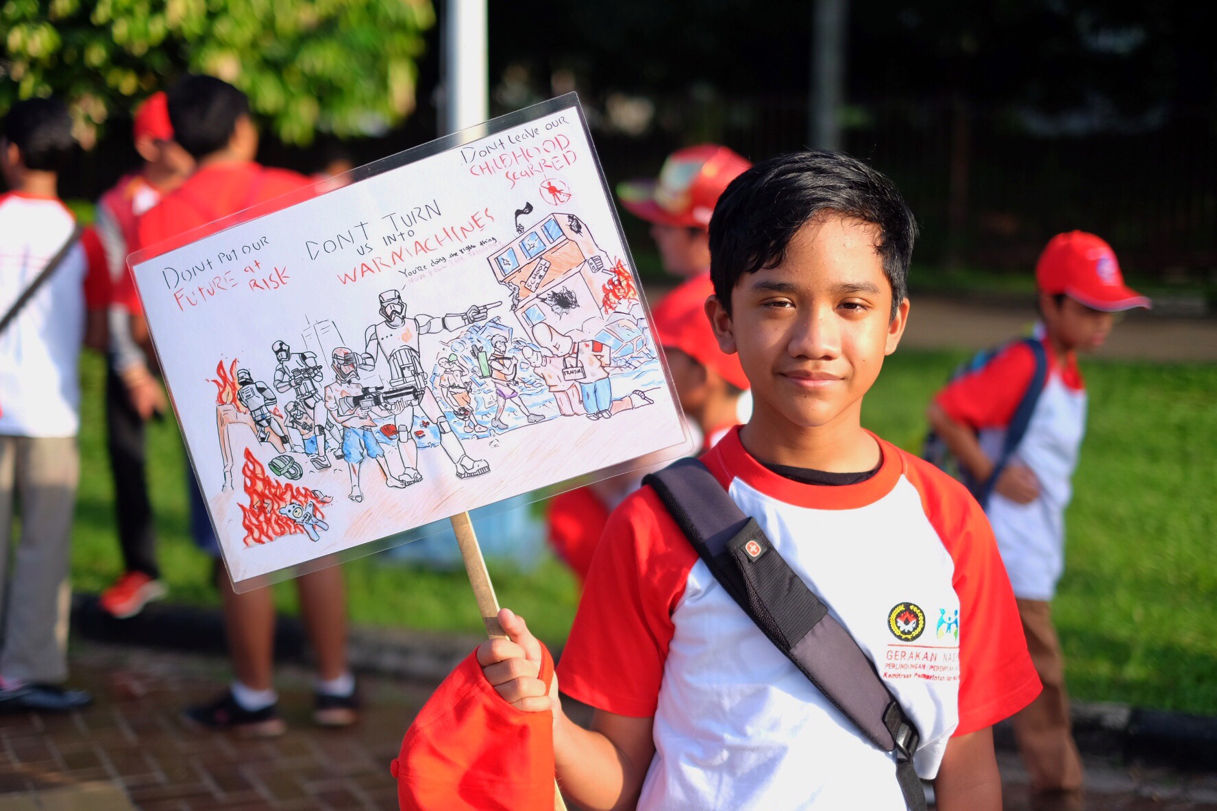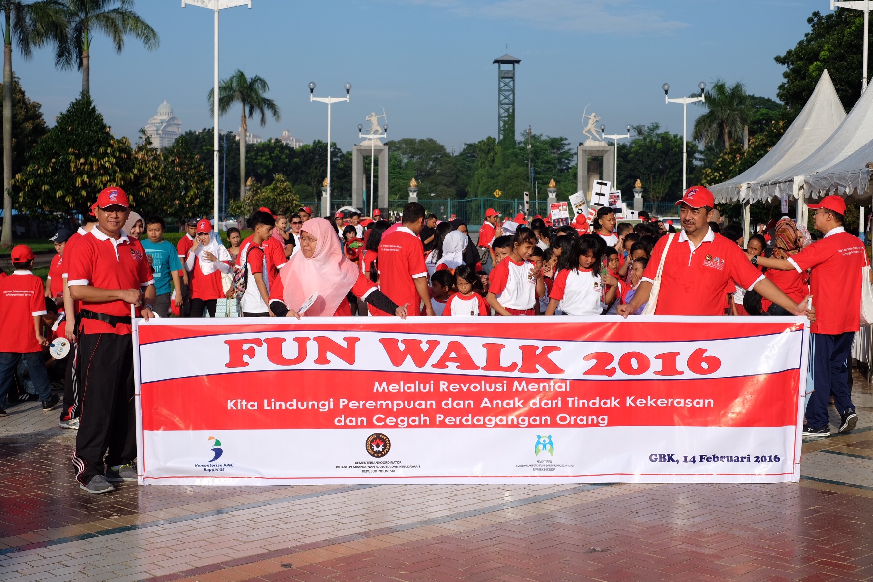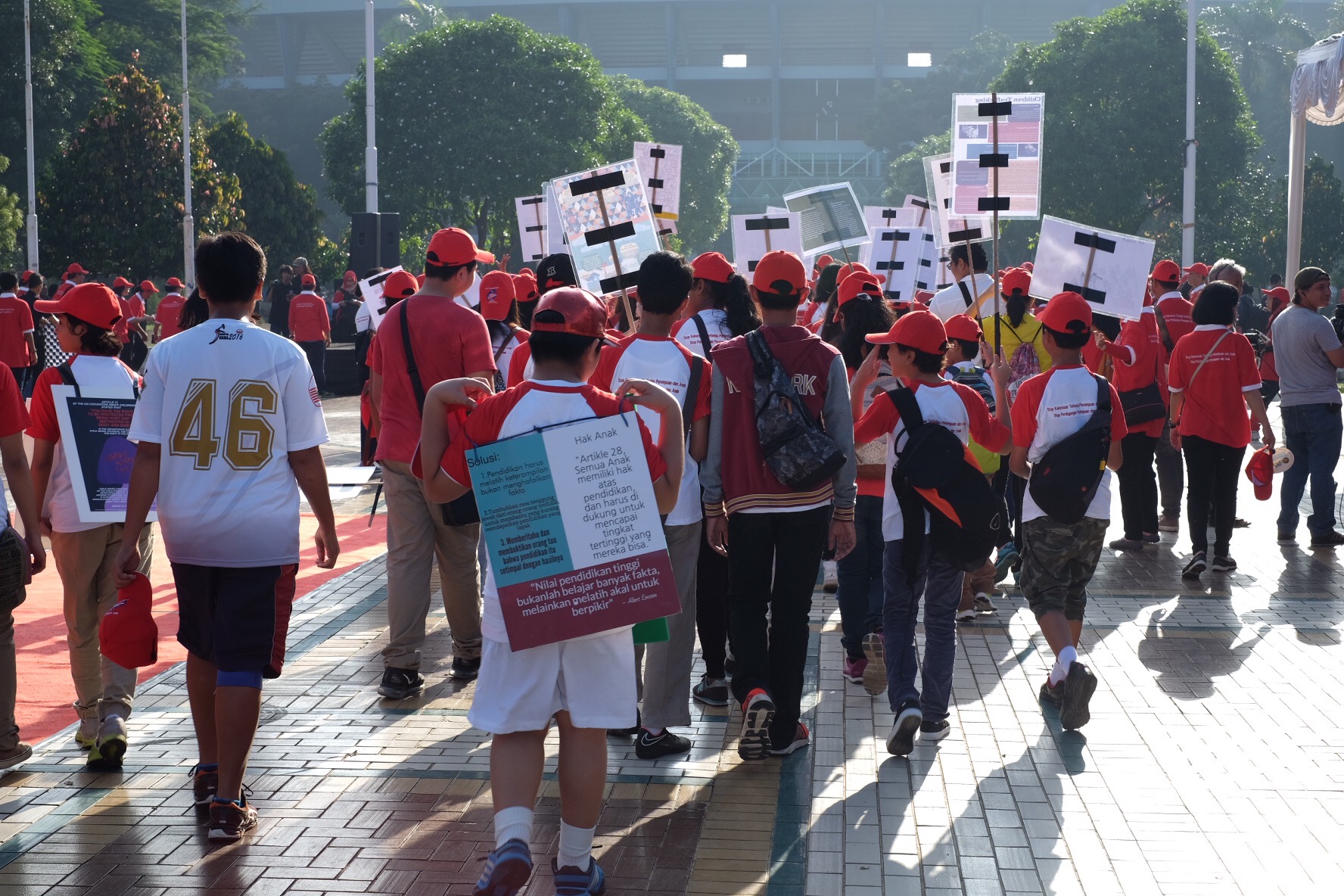 Aya and Rafif joined their school mates to support the act against Women and Children Violence in Gelora Bung Karno Senayan.