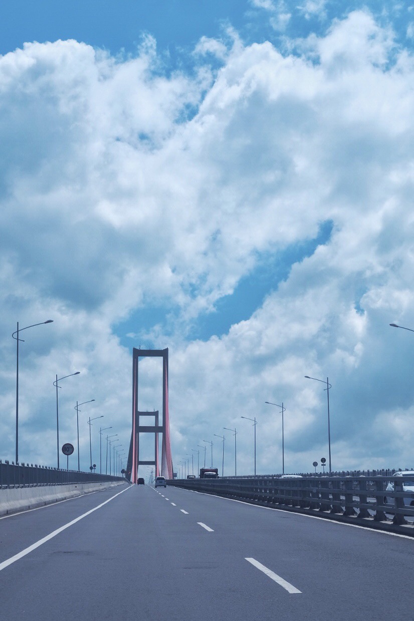 Crossing Suramadu bridge for the first time. The 13.5 km bridge connects island of Java and Madura, cutting more than 2 hours of travel. Majestic and fantastic!