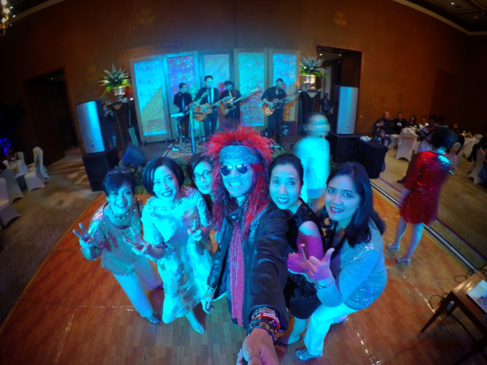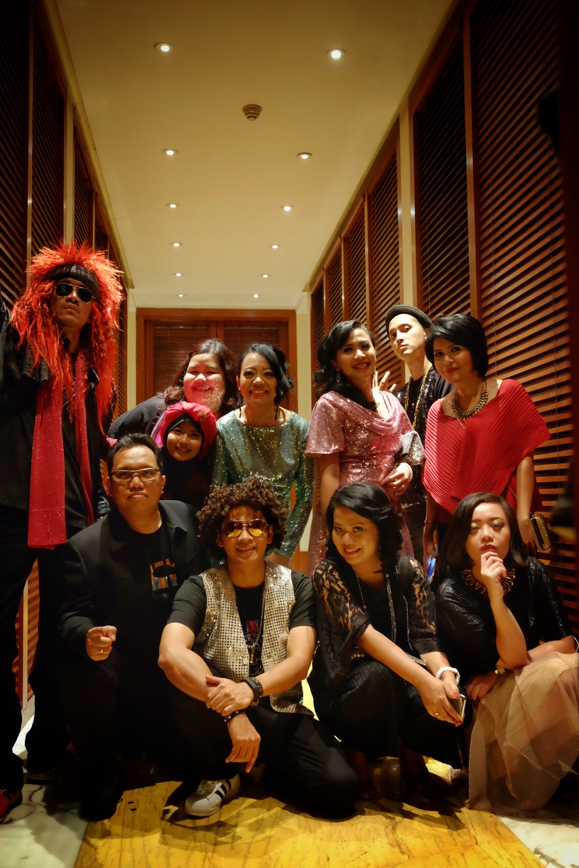The HR ABN AMRO folks came in colorful attiresMe and the Ladies of the Event in front of the stageThe Disco FloorHappy faces at the dance floorMe and my MC partner, SannyStill mesmerized after party!I do look like 80s rock star, don’t I? Jon Bon Jovi anyone? LOLSorry guys! The focus was in me! 🙂 Well, the HR ABN AMRO/RBS Team is known for our habbit to take extra ordinary group photos. Here is one of them to add into the collection.And the final one. Axl Rose and Slash, Javanese version. Haha!