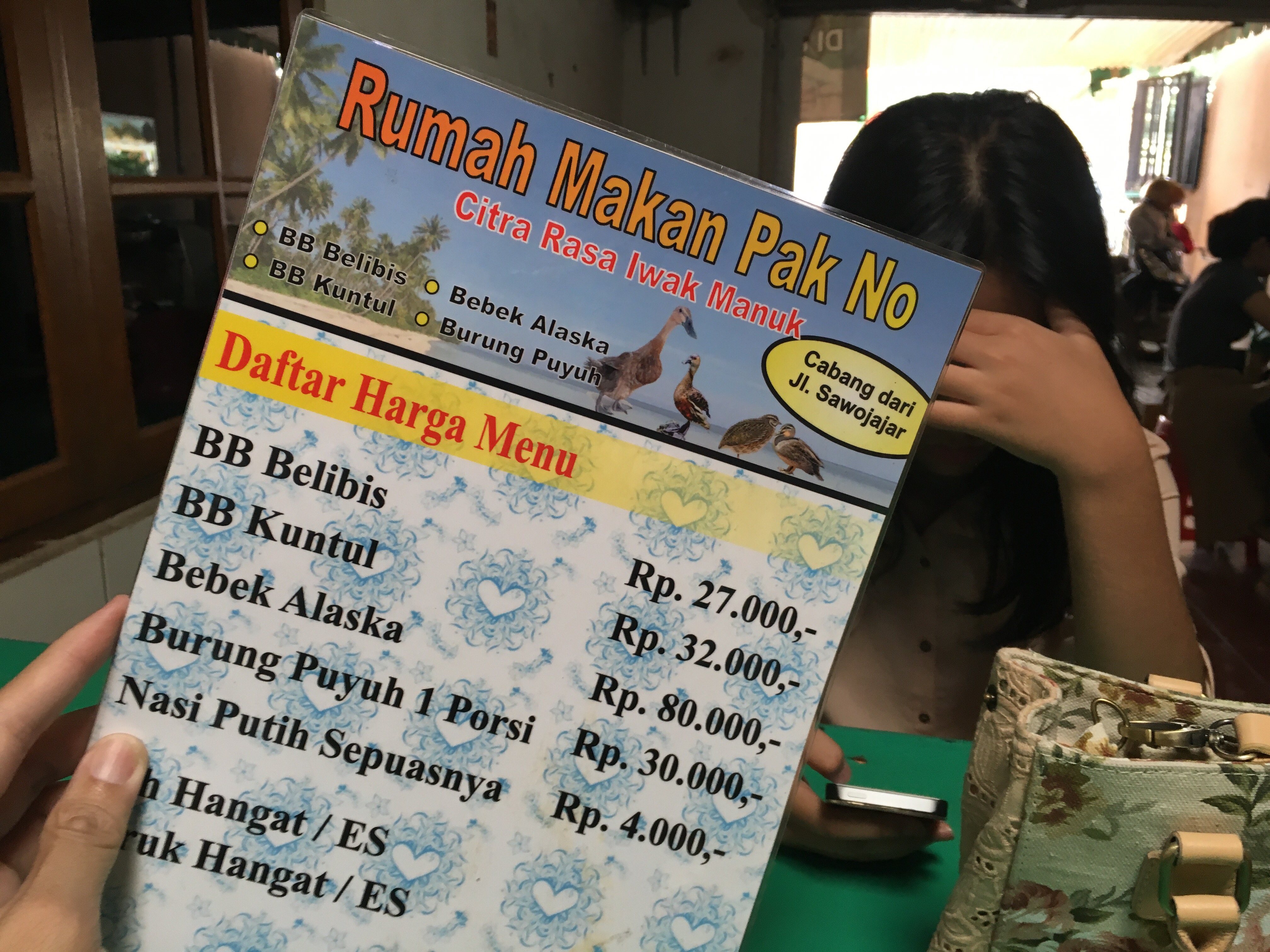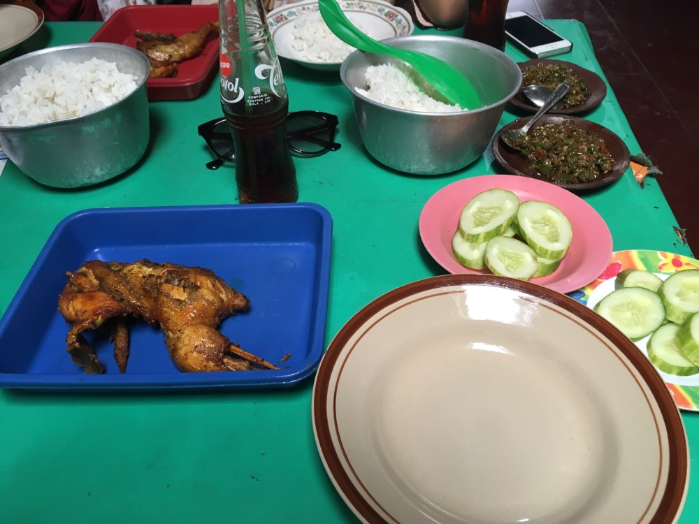 This is quite unusual dish, but trust me, it’s really really good. Serving fried grouse (burung belibis), rather a fried chicken or duck, you’ll get tender, marinated meat with white rice and extra-hot sambal (chili).