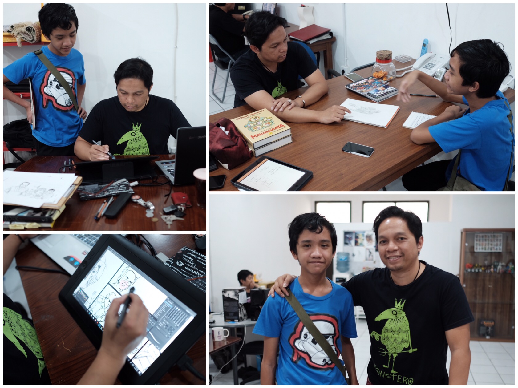 It was a fascinating day for him, I can see how Rafif was really engaged in the discussion with Mr. Iwan and he can see in person how a drawing talent can be a good source of living these days. But please remember Mr. Iwan No 1 tip to be successful comic maker/artist: discipline!