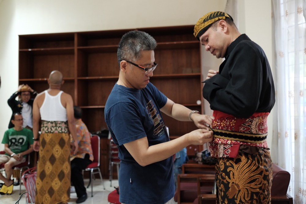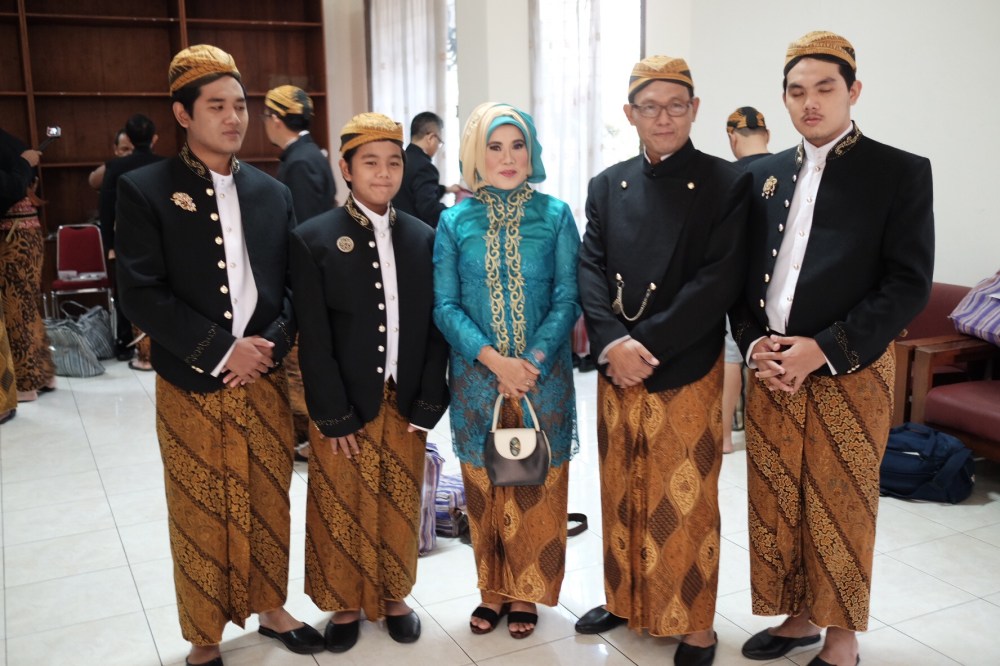 When it’s done, time for taking pictures!One of the perks for having Javanese traditional wedding party is to don on traditional javanese costume – including this “Beskap” – a royal dress for a javanese party. We had fun even when putting the uniforms on. And it looks good for pictures!