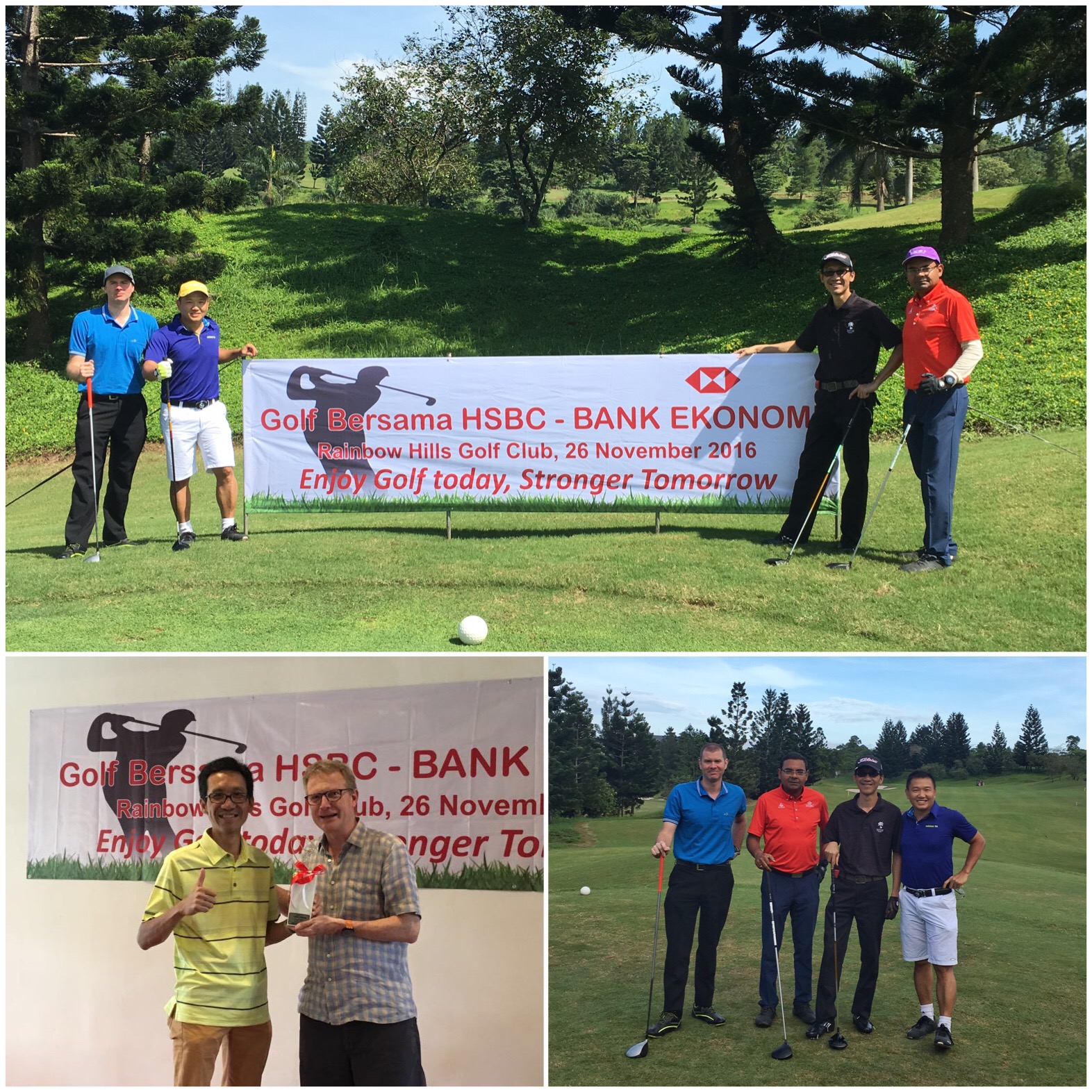 Held at Rainbow Hill Golf Course, the tournament hosted 44 golfers from both Bank Ekonomi and HSBC Indonesia. It was competitive and fun at the same time. What made it more satisfying for me was that somehow I could cope with the pressure of playing with the big boss (haha). Although lost the wager to the boss, but played relatively solid, especially on greens and tee offs. Lovely day at the lovely golf course, indeed.