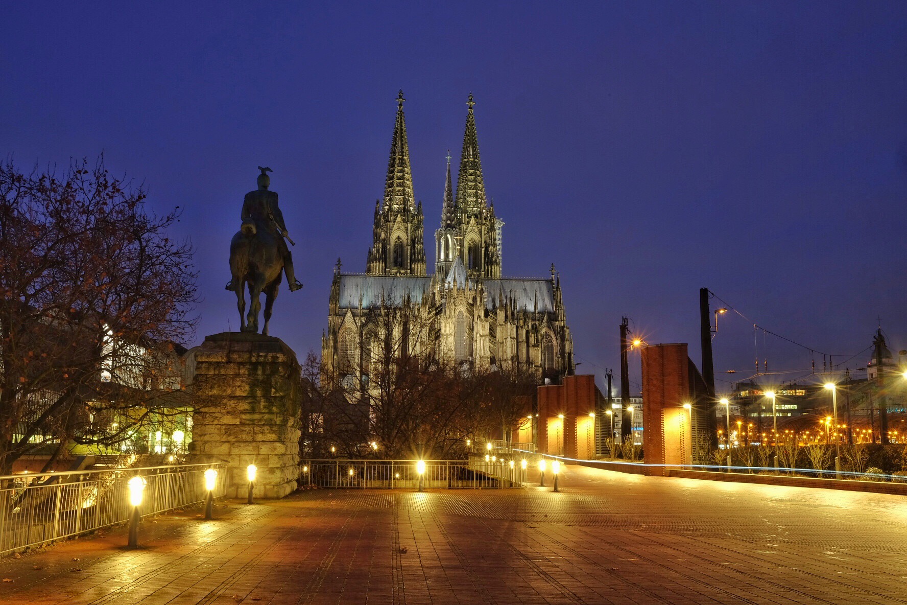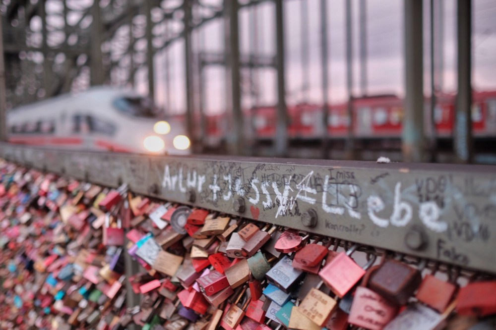 Dawn of morning at Rhine River Kaiser Wilhelm Equestrian Statue at west end of Hohenzollern Bridge Another shot of Kaiser Wilhelm Equestrian statue This low angle shot was the first shot I take when I was out in the morning. It’s still dark albeit it was 7.15 am The majestic Cathedral in details You can find the lockets of love along the Hohenzollern Bridge. Right next to it is the rail track