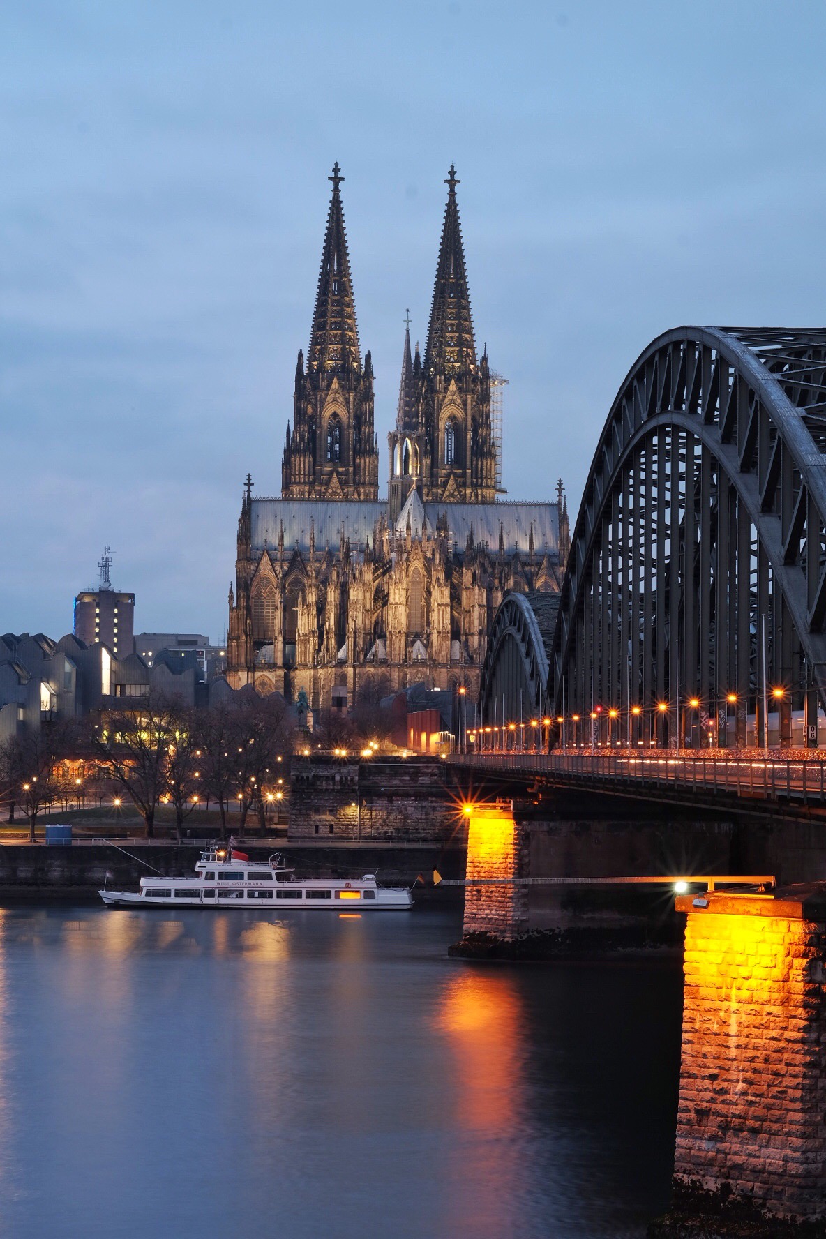 The bridge, the cathedral and the river – complete landmark of KolnThis morning, woke up really early due to jet lag, I used the time to roam the neighborhood and went photo hunting. Walked across to the east end of Hohenzollern Bridge, which is the popular spot to take picture of the bridge and the majestic cathedral. Happy with the captures. Time well spent 😉
