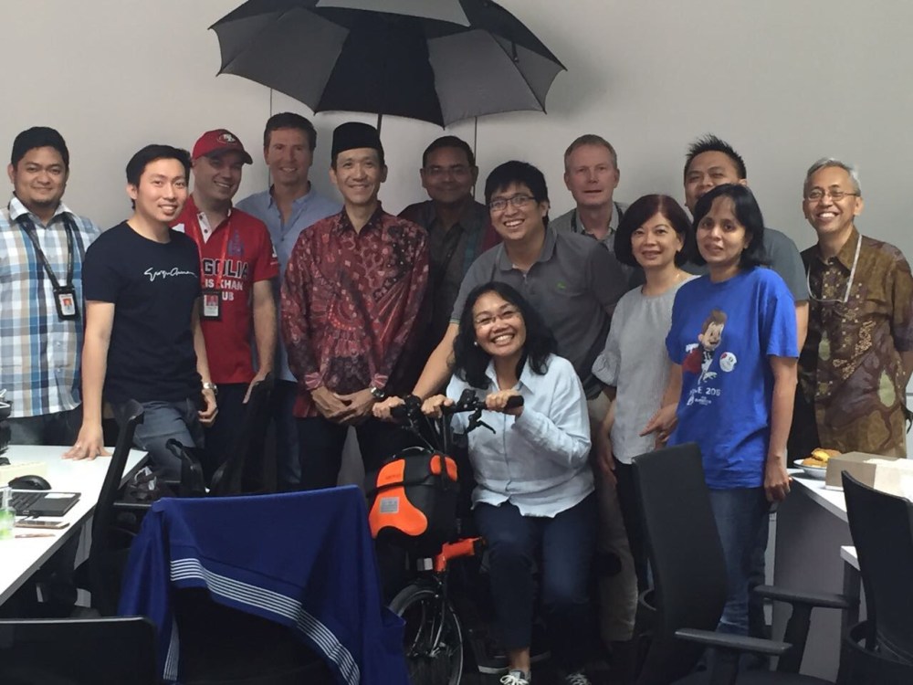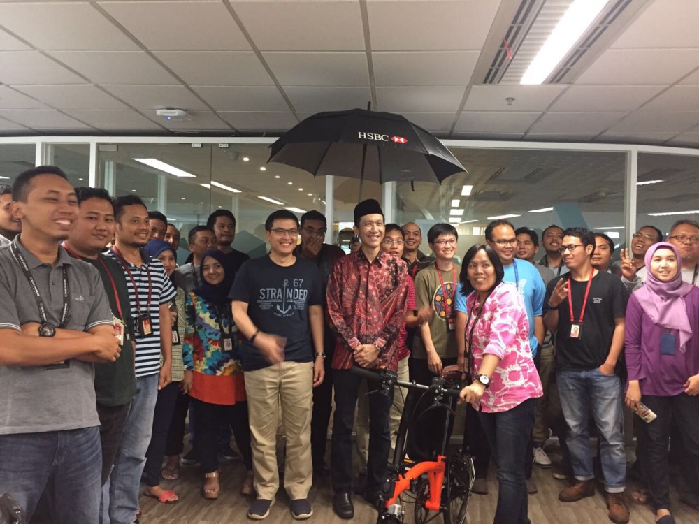 Until they saw me. Yeah, our bank’s version of Jokowi. Haha. Hey, at least he also brought bike and asked that “Sebutkan Nama Ikan” quiz!