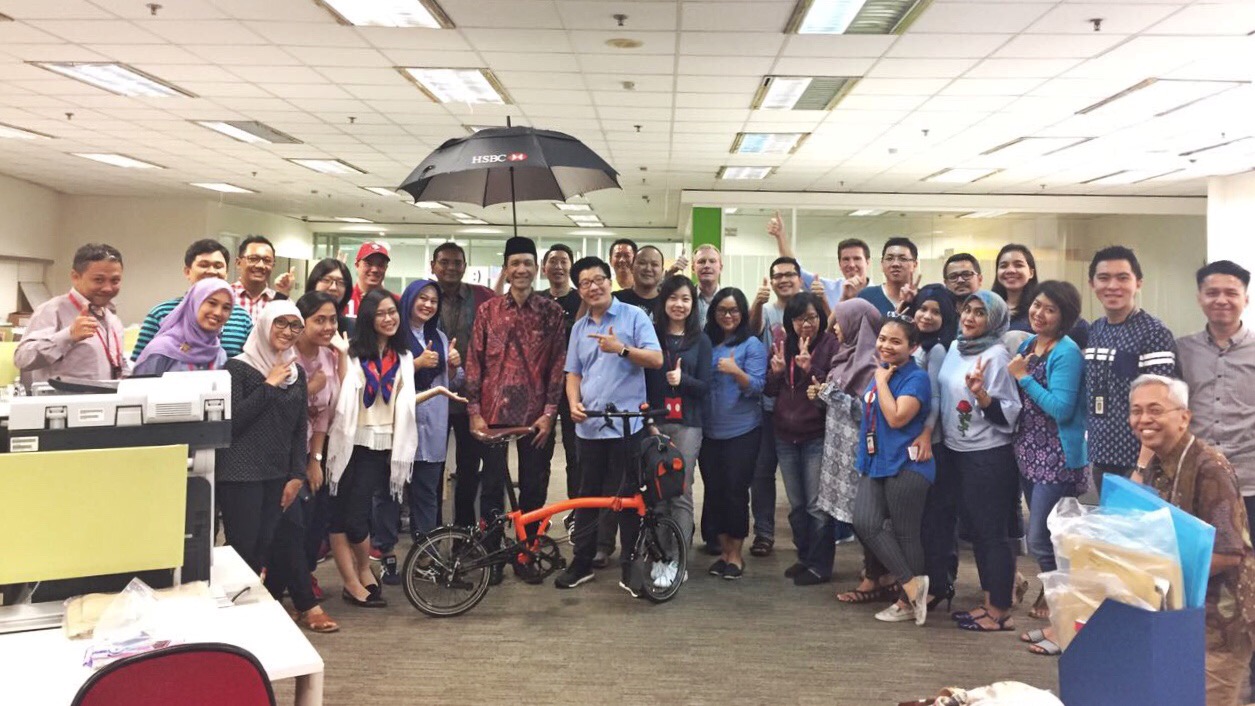 Until they saw me. Yeah, our bank’s version of Jokowi. Haha. Hey, at least he also brought bike and asked that “Sebutkan Nama Ikan” quiz!