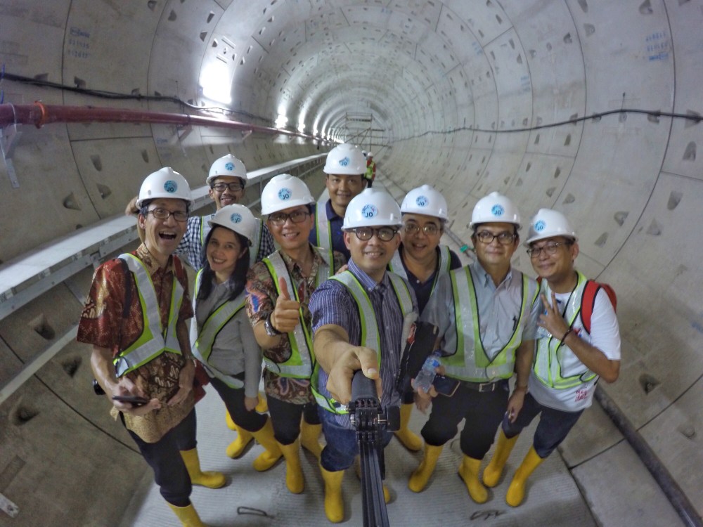 Puncak kunjungan kami tentu saja terjadi saat kami dibawa ke main attraction of the visit: the famous underground tunnel! Sepertinya lokasi ini sudah jadi instagrammable spot banget untuk orang-orang yang beruntung punya kesempatan untuk mengunjungi proyek MRT Jakarta seperti kita-kita. Jadi tanpa dikomando lagi, rombongan sudah terpencar menjadi kelompok-kelompok yang sibuk selfie, wefie atau apalah namanya itu. Penjelasan Bapak Tour Guide dari MRT Jakarta jadi sejenak terlupakan, demi kepentingan untuk eksis! Maaf ya Pak 😊