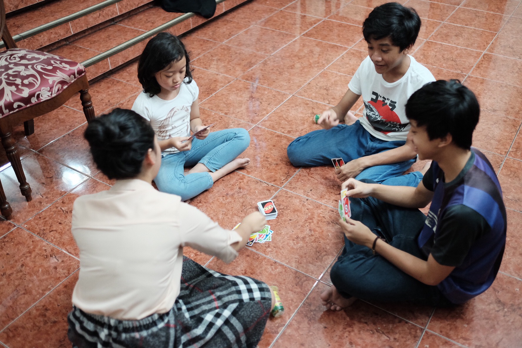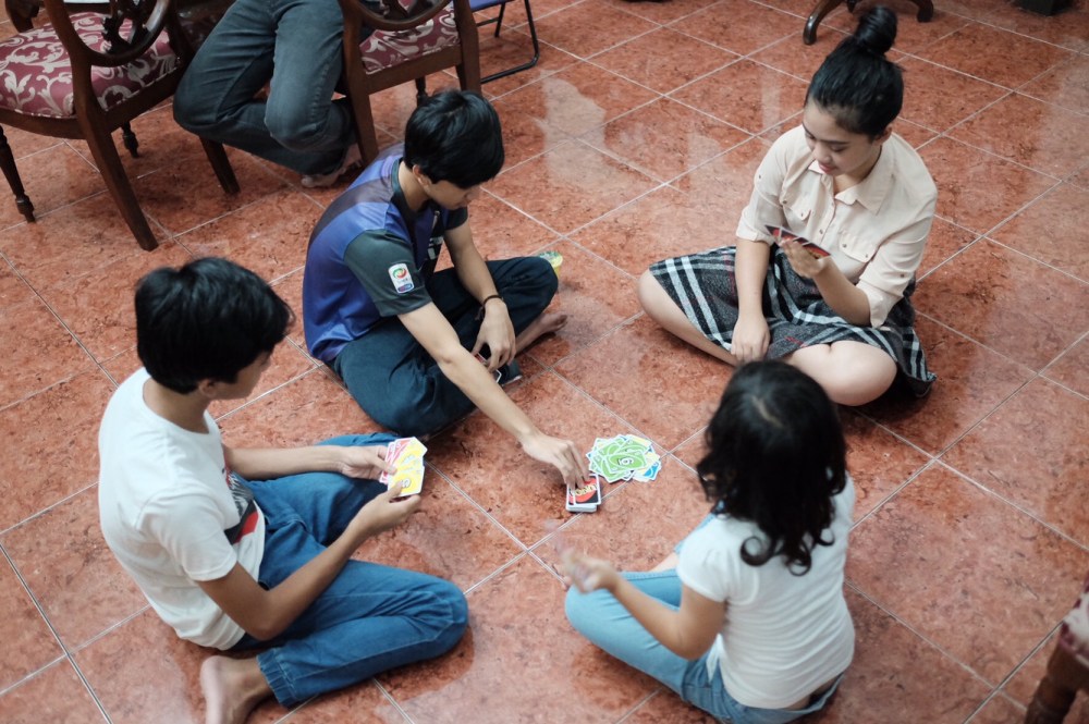 It’s nice to see the kids are enjoying themselves playing Uno cards. Away from mobile phones, away from internet. Just a pure interactions between themselves. The lost art of having fun, really.