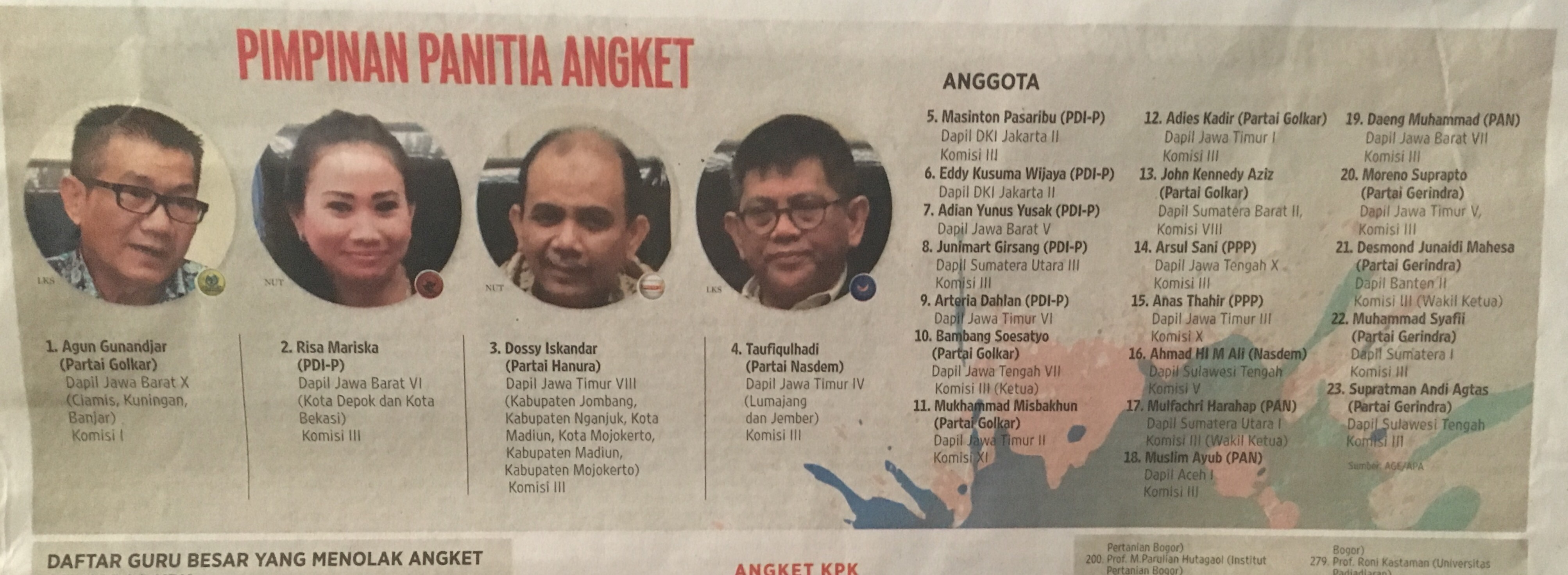 Total ada 23 anggota DPR di dalam Pansus Hak Angket KPK. Berikut nama-nama mereka: