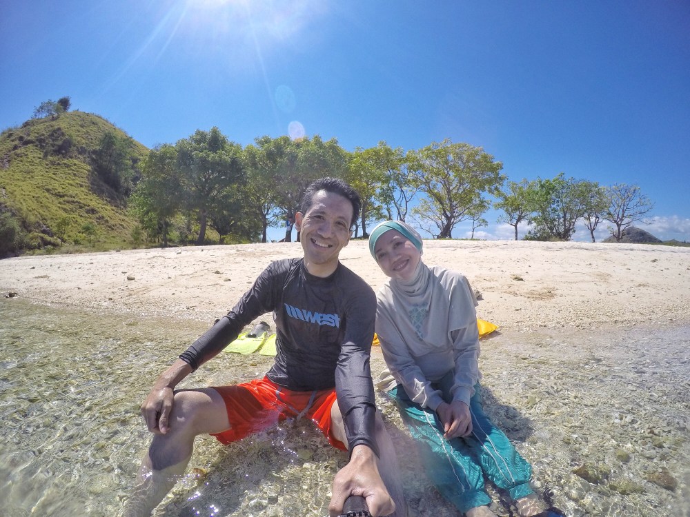 Our first stop of the day is a small island called Kelor. It’s a beautiful island with tiny beach for snorkling. It also has a hill which you can climb to the top to observe breathtaking scenery from above. Unfortunately the steps are a bit steep for Aya and Elok’s liking so they decided to stay on the beach instead.