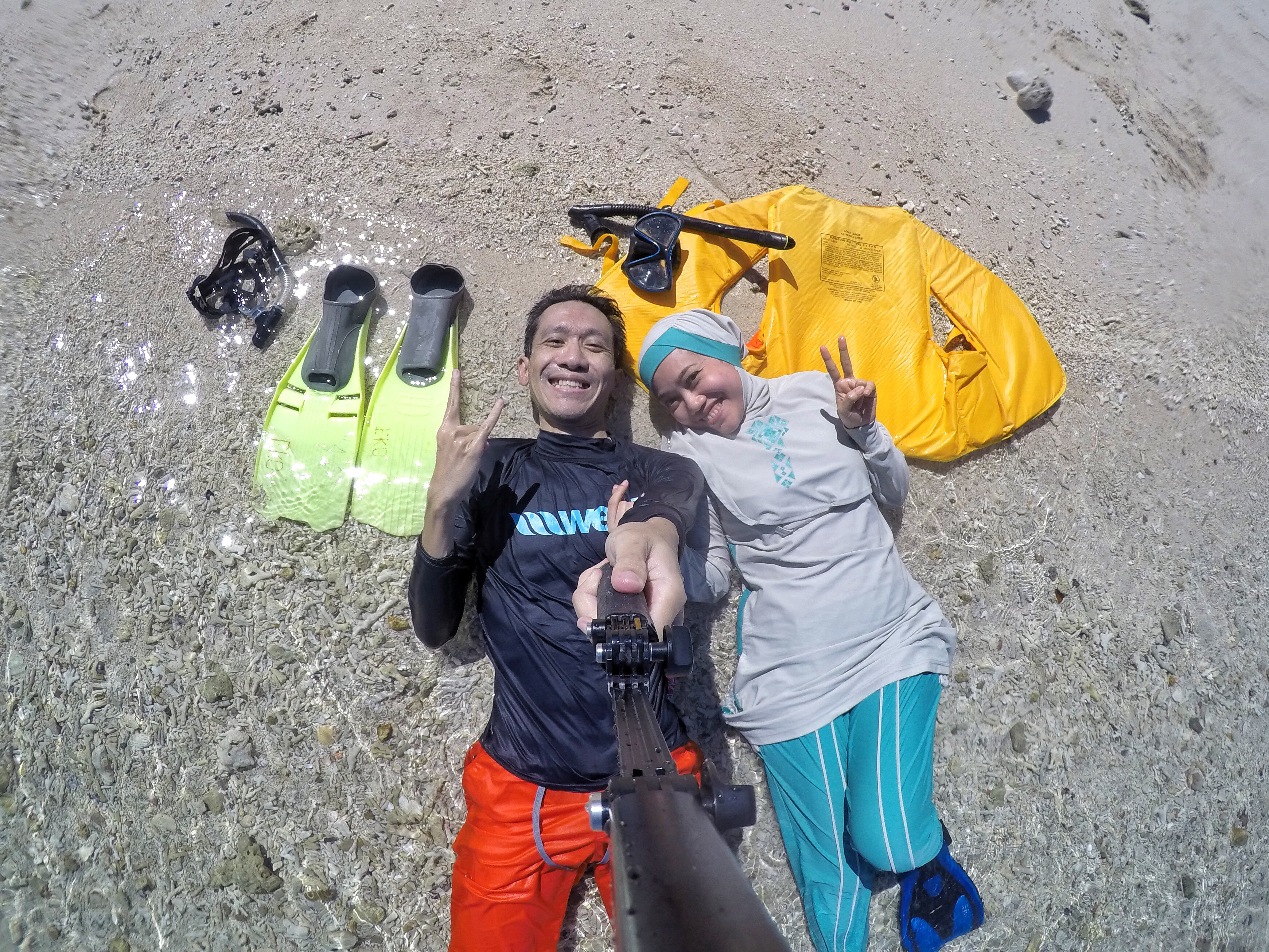 Our first stop of the day is a small island called Kelor. It’s a beautiful island with tiny beach for snorkling. It also has a hill which you can climb to the top to observe breathtaking scenery from above. Unfortunately the steps are a bit steep for Aya and Elok’s liking so they decided to stay on the beach instead.