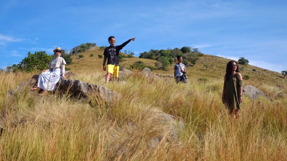 Family picture in the savannahSabolo marked the final island we visiting during our 4 days in the ocean. It is a very small island which is unoccupied, but has very nice savannah and small hill which makes a beautiful scenery. And as commonlyfound in the islands around here, the sea water are very clear and pristine.