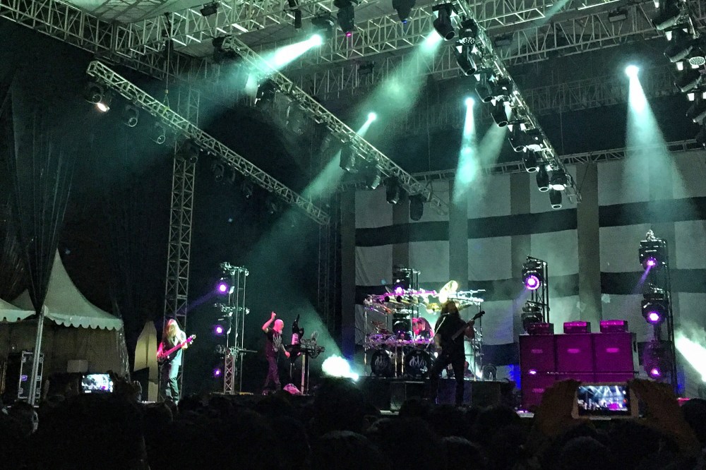 Last night, the three original line up – Achmad Albar (vocals), Ian Antono (guitars) and Donny Fatah (bass) – were joined by Abadi Soesman (Keyboards, Bharata) and Fajar Satritama (drums, Edane). Considering their ages (they’re mostly in 60s and 70s), they still showcased high energy performance. Not sure if it’s because they’re playing with Dream Theater, but last night God Bless showed their progressive side as a band. They played set list mostly from their early years repertoire, which some of them recently was remixed. The presence of Abadi Soesman introduced some of the ethnic elements into the mix. And there were no songs post “Semut Hitam” era, well probably Ian Antono didn’t want to play Eet Syahranie’s guitar works.