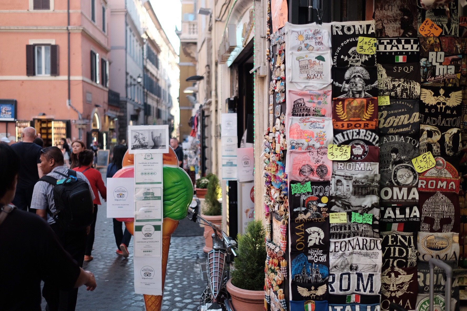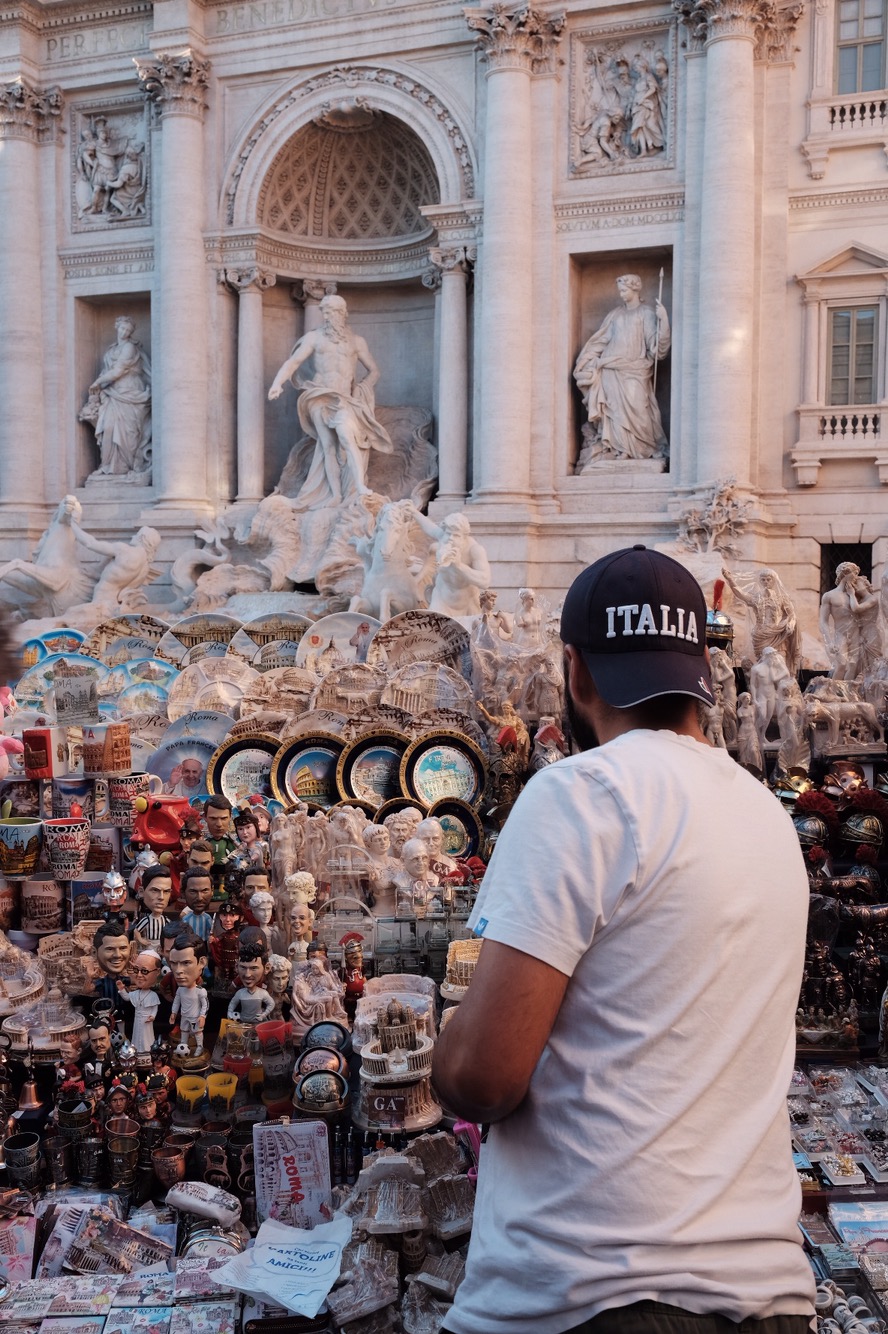 Surrounding the fountain, we can find many shops selling pizza, gelato, souvenirs and also the famous Italian coffee shops.
