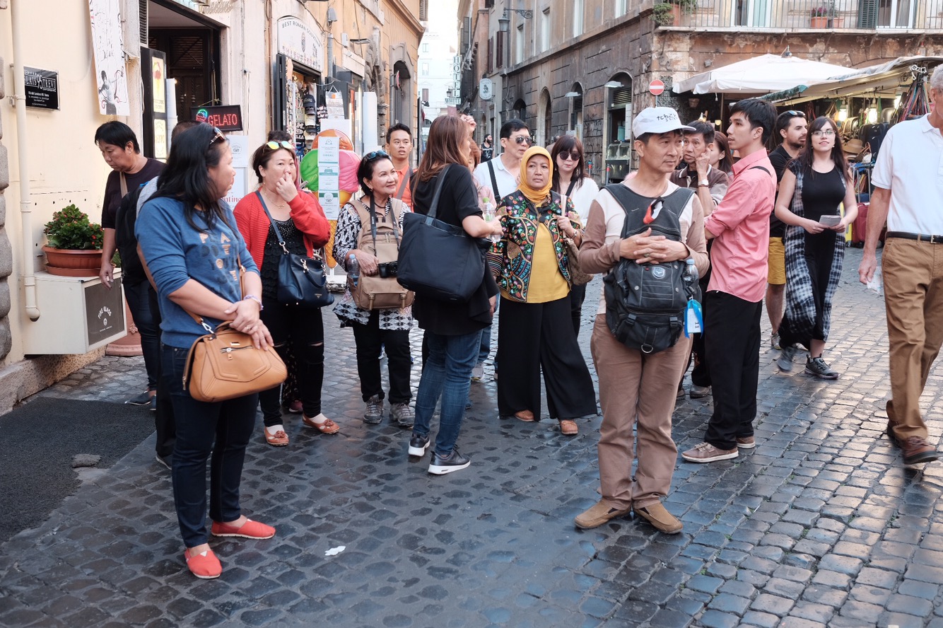 Have done with the Colosseum, the group moved quickly to area of Trevi, where the famous fountain, called as “Fontana di Trevi”. Standing 26.3 metres (86 ft) high and 49.15 metres (161.3 ft) wide,[1] it is the largest Baroque fountain in the city and one of the most famous fountains in the world (Wikipedia)